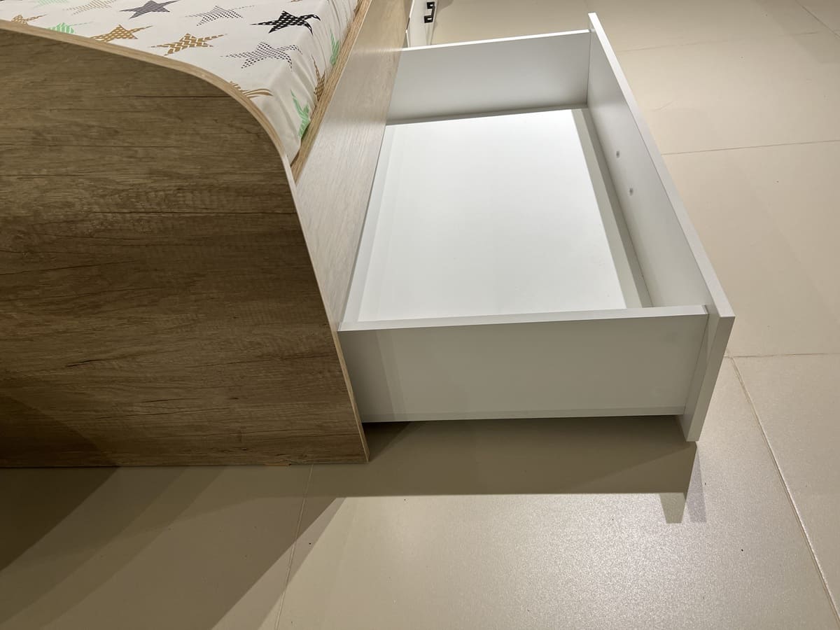 Высокая нагрузка на спальное место. Полновыкатные ящики. Дно ящиков прочное - выполнено из ЛДСП 16 мм (не ДВП!). Ящики выдерживают нагрузку до 45 кг каждый |