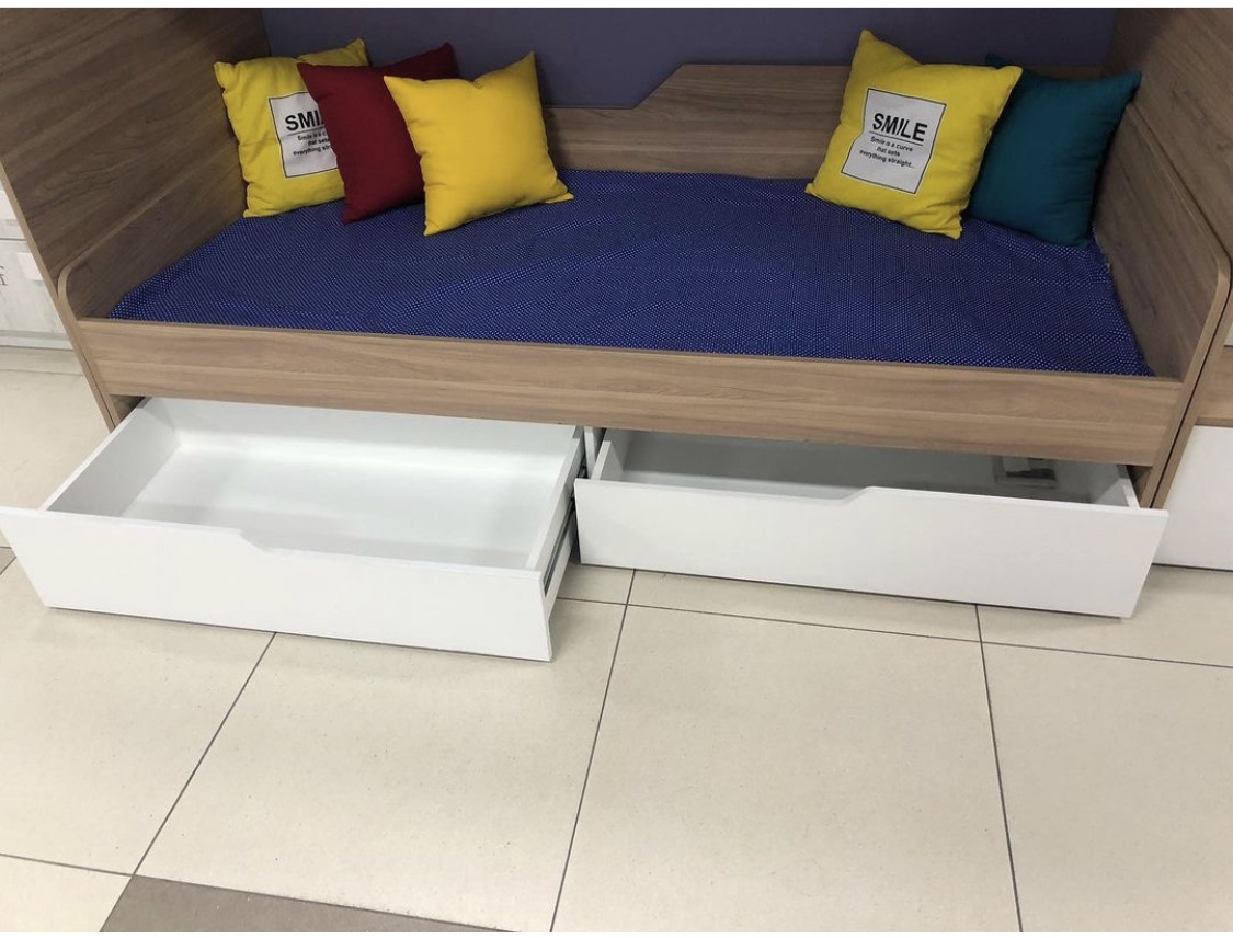 * В кровать встроены два выдвижных ящика на шариковых направляющих полного выдвижения.