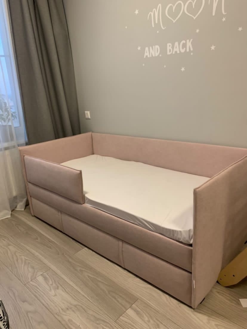 Кровать полностью безопасна для ребенка, так как имеет прочную конструкцию и мягкие подлокотники, которые защитят ребенка от травм.