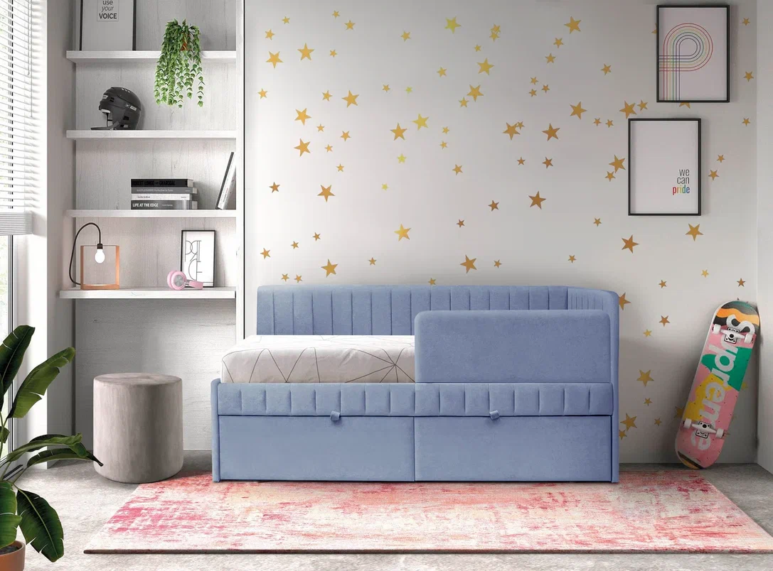 Очень уютный, компактный и стильный диванчик станет прекрасным спальным местом в комнате ребенка.