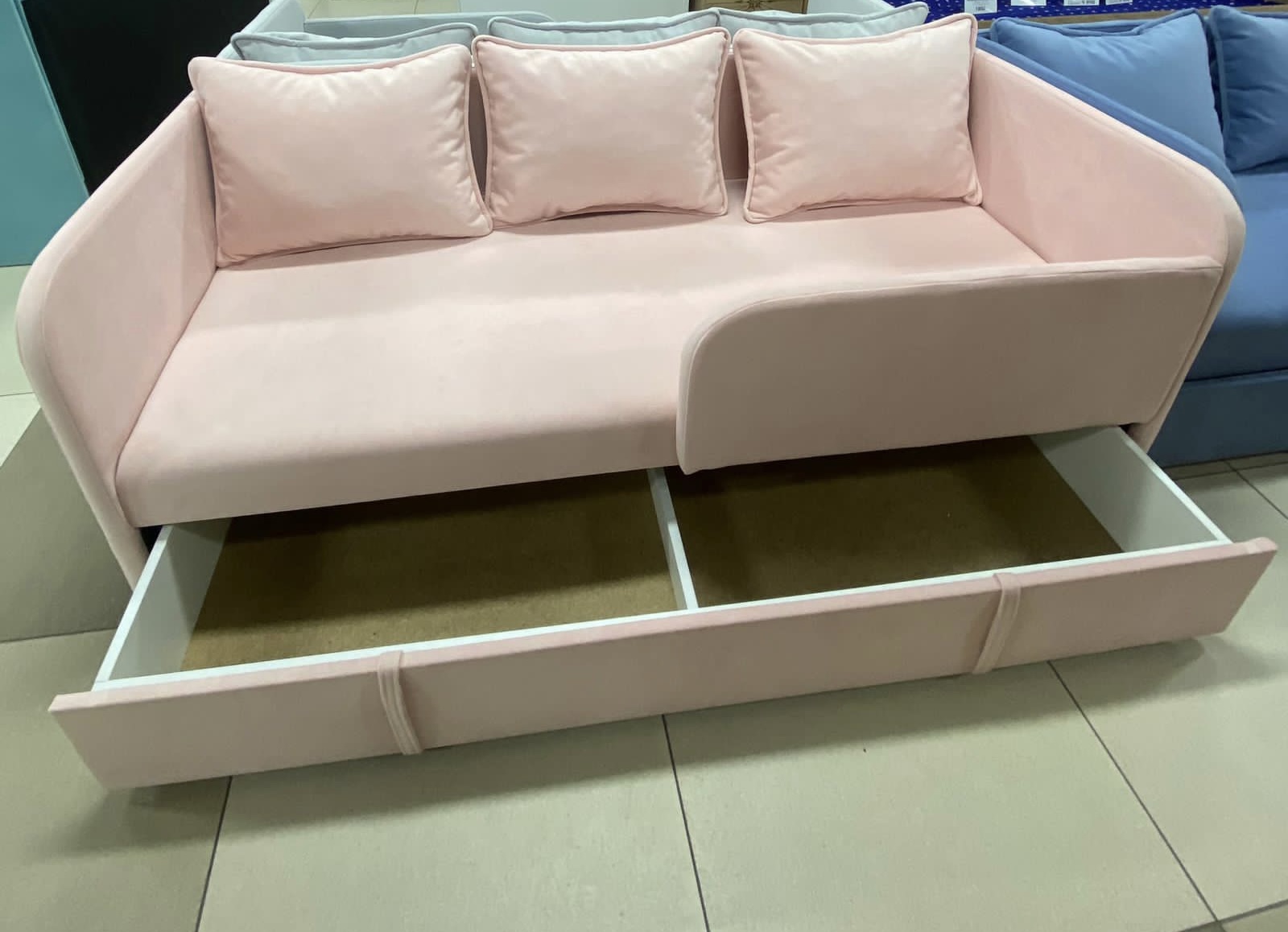 Диван-кровать Кэви (правый бортик). Велюр Тедди 324 (пудровый) от Династия Kids