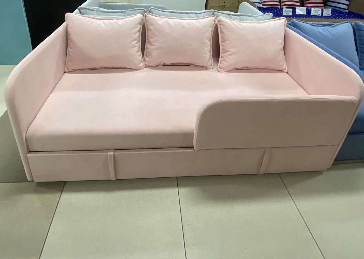 Диванчик подойдет для самых маленьких деток, так как имеет защитный бортик.