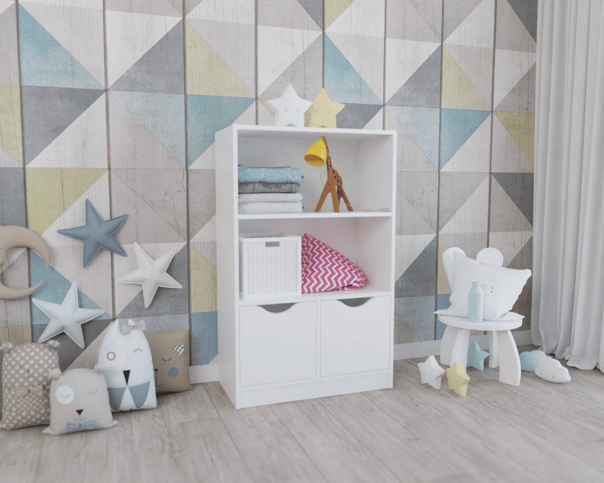 Ребенок с удовольствием разместит в таком стеллаже свои любимые игрушки и книги.