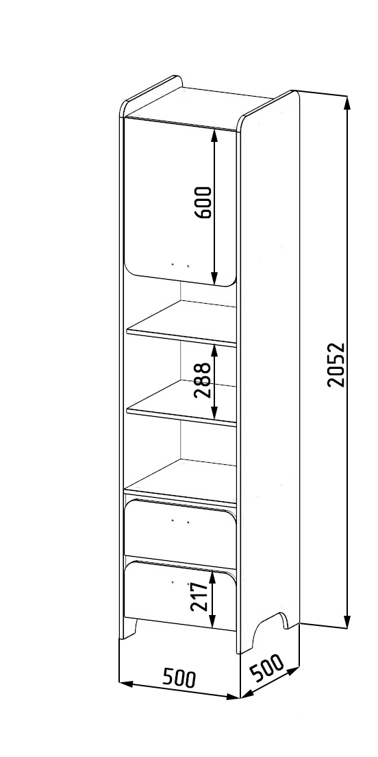 Габариты: ширина 500, глубина 500, высота 2060 мм