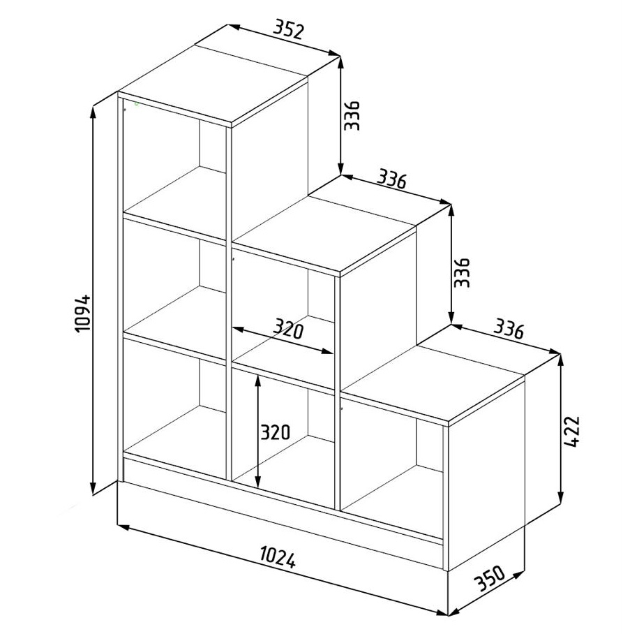 Габариты: высота 1094, глубина 350, ширина 1024 мм