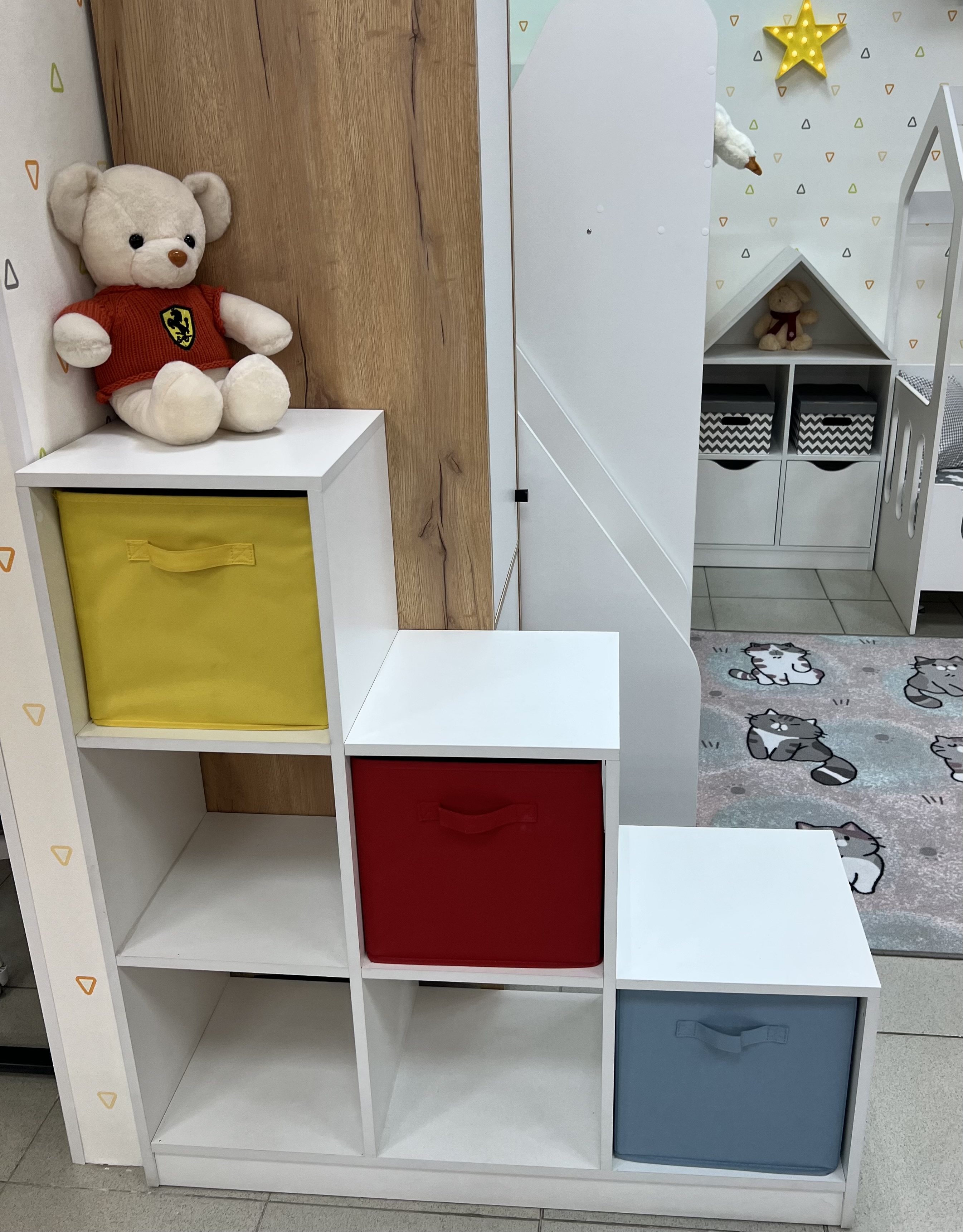 Коробки для игрушек не входят в стоимость стеллажа