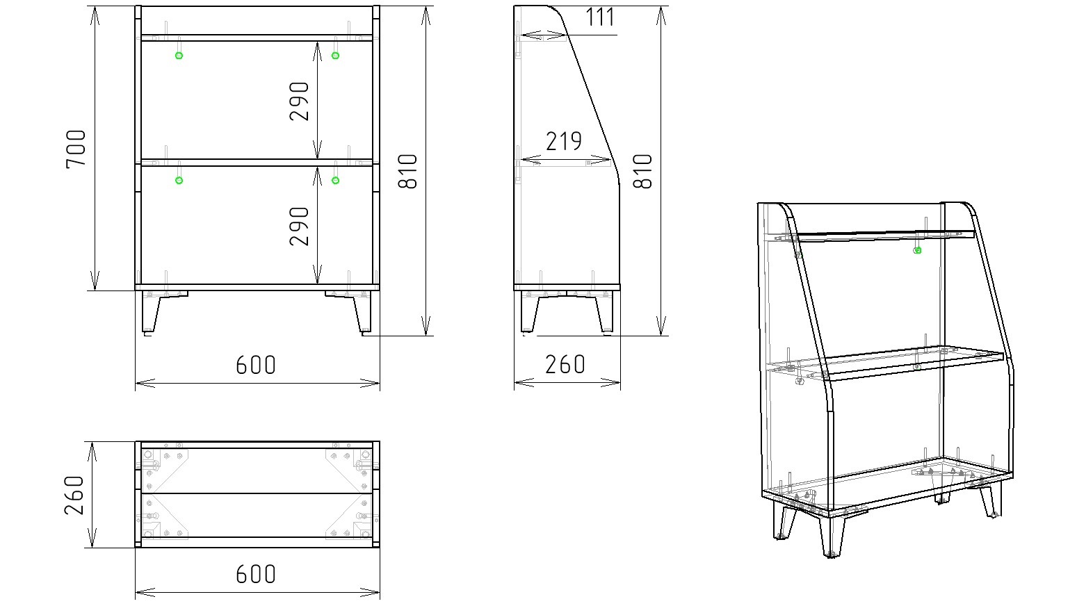 Габариты: высота 700, глубина 260, ширина 600 мм