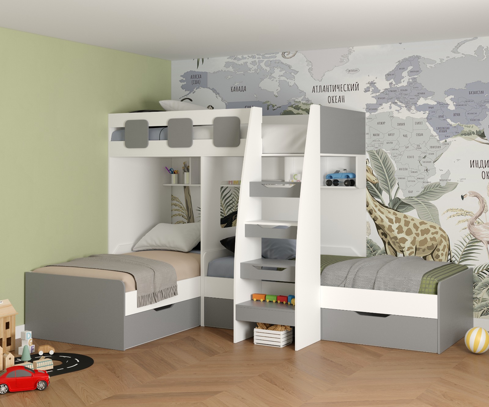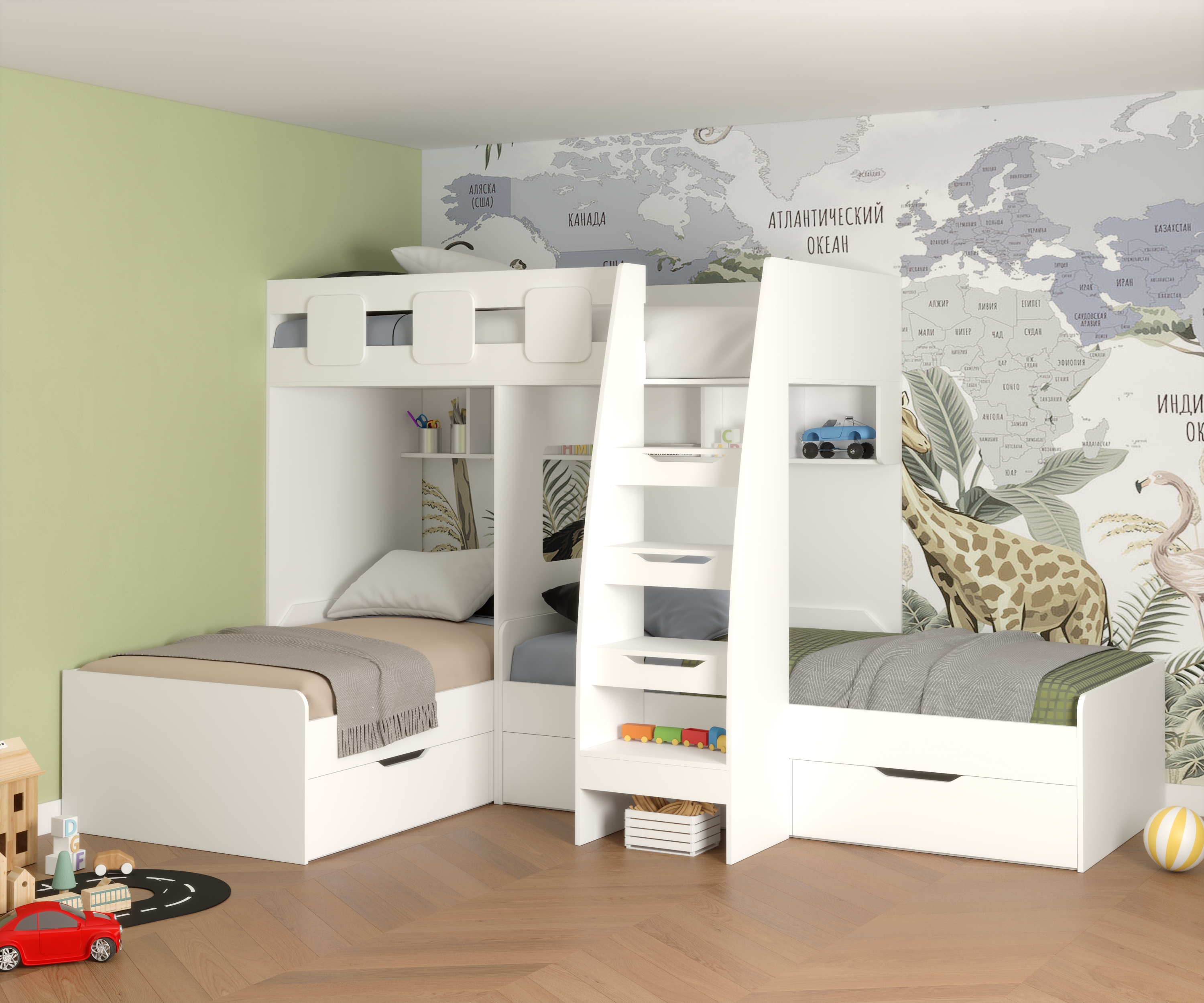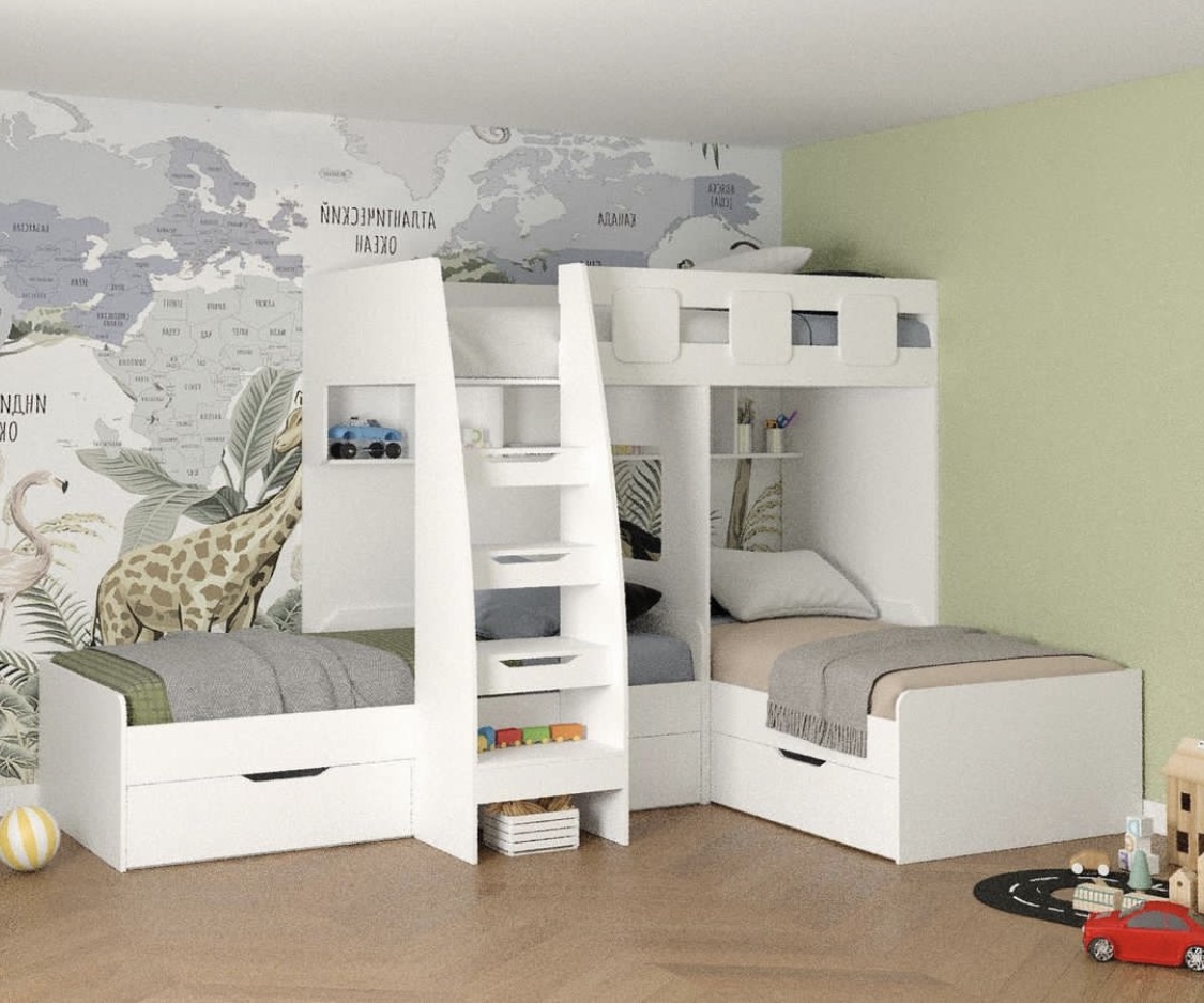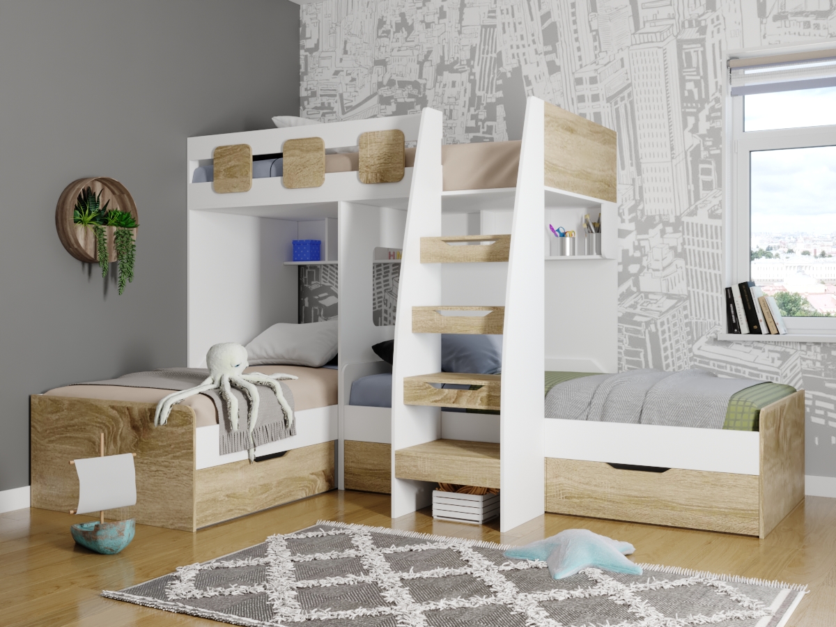 Подарите своим детям незабываемые моменты отдыха и веселья с 3-ярусной кроватью "Династия"! Воплощение безопасности и комфорта: