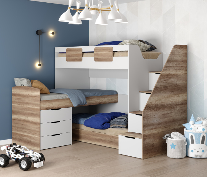Основание кроватей – прочный настил ЛДСП, который позволяет ребенку спать на ровной поверхности, что важно для детской спины.
