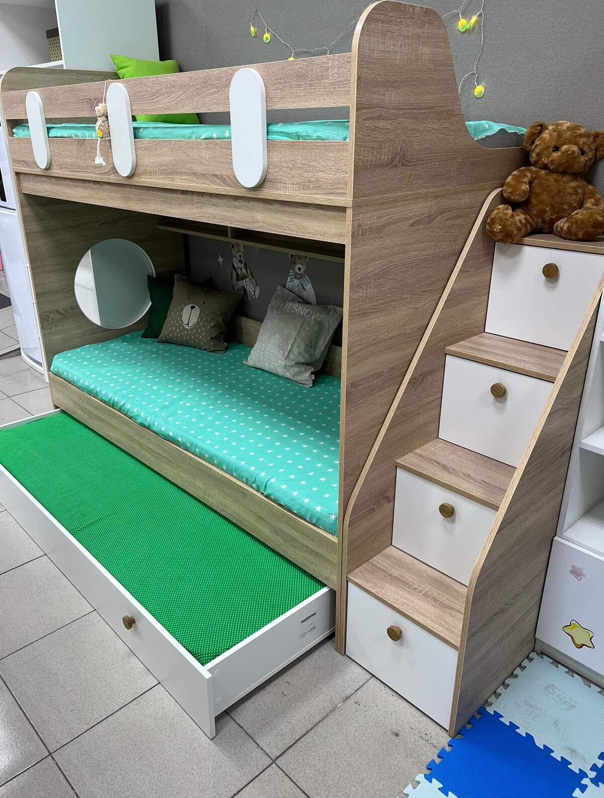 Трехъярусная кровать Фортуна-3 с удобной, безопасной лестницей и комфортной высотой.