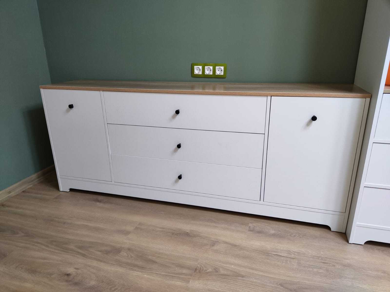 В ноябре 2023 года заказала в детскую шкаф и комод-тумбу. Мебель отличная! Не успели собрать и начать пользоваться- случилась неприятность, ночью на тумбу вылилась вода из неисправного увлажнителя, верхняя крышка-столешница конечно же впитала воду и вздулась. Написала менеджеру в чат, можно ли заменить (купить!) новую крышку для тумбы. Каково же было удивление, когда с фабрики ответили, что это возможно и сделают они это бесплатно!!! Благодарили, что мы честно признались и не оформили рекламацию))) Крышку пообещали прислать с очередной поставкой из фабрики в конце января. И прислали! Только что забрала ее из салона, теперь у нас тумба снова будет как новая. Благодарю компанию Династия Кидз за такое чуткое отношение к клиентам! А также за отличную качественную мебель. Муж собирал все сам, без проблем!